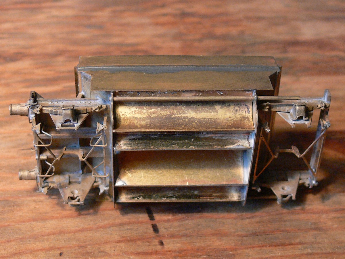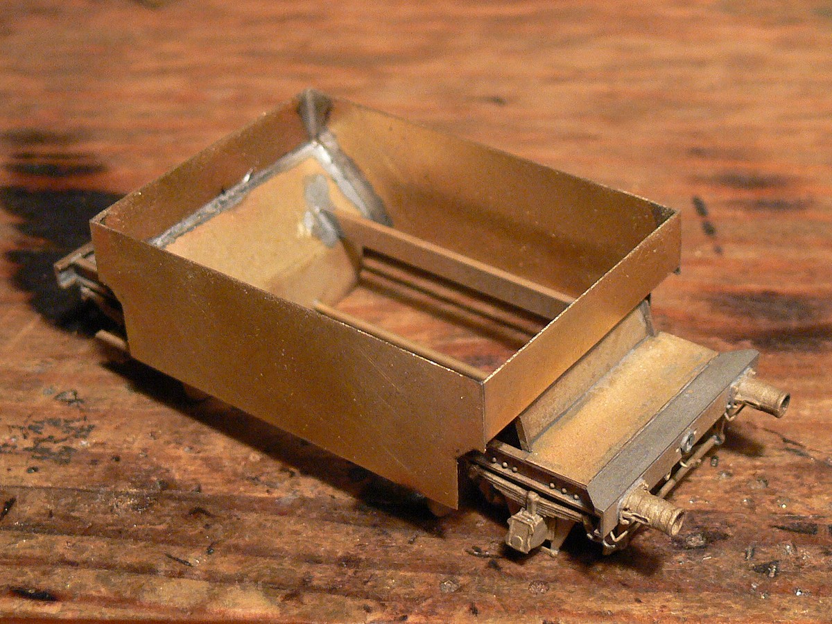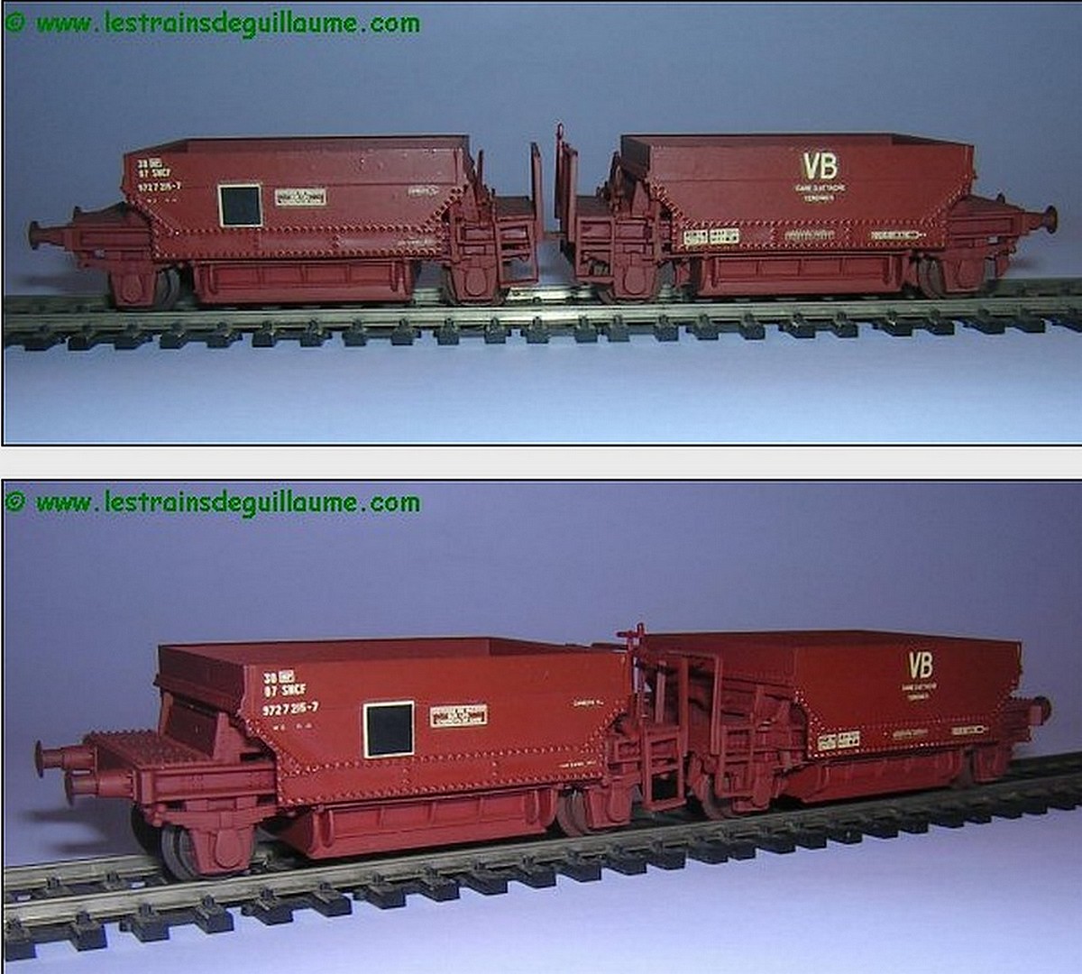 Aussi, partant de wagons RMA, j'avais envisagé, tout en gardant la trémie, de fabriquer un châssis laiton histoire d'affiner ce couplage :