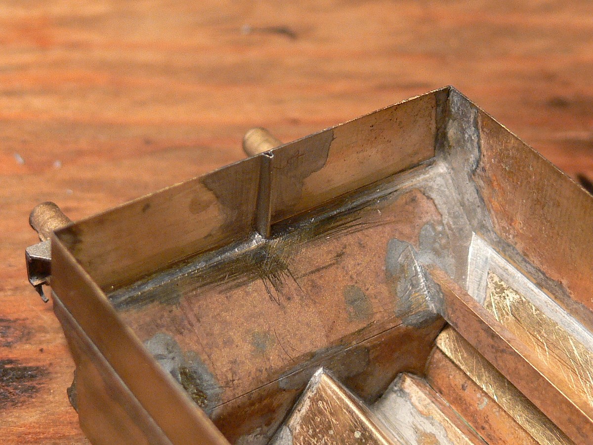 Tôle de 0.2 pliée + 2 demis tubes carrés en laiton soudés de chaque côté et mise en place :