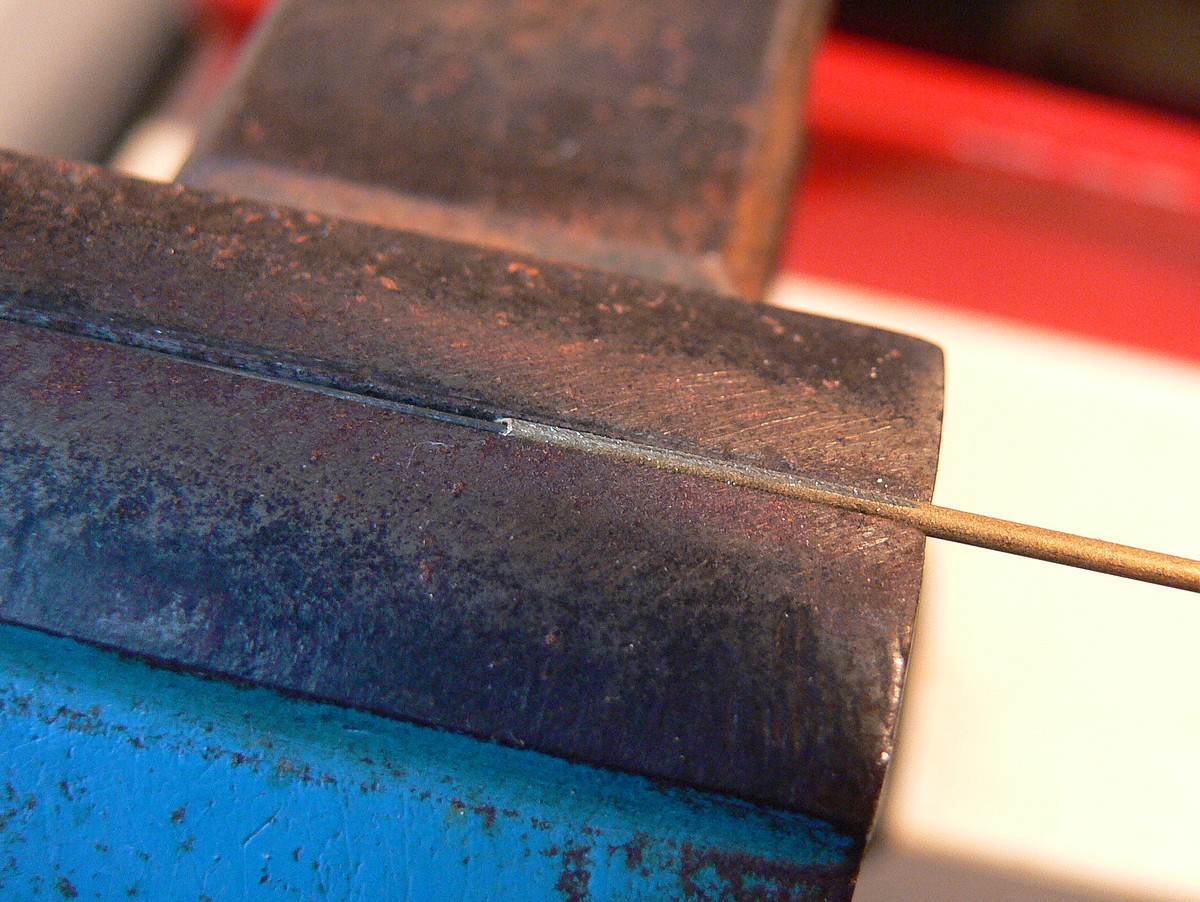 Tube de 1 mm avec un fil de maillechort de 0.5 à l'intérieur, ovalisé à l'étau.