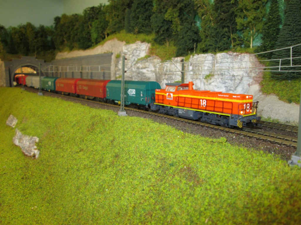 aprés un ultime essai, voici la machine en ligne sur mon réseau TT, avec un train de coils