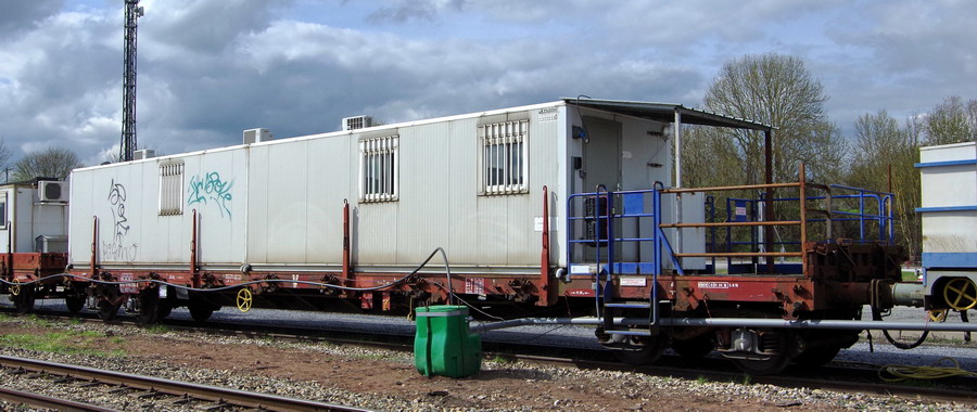 et le voilà sur la rame d'hébergement atelier du train Parc n°3 en provenance de Laluque (80) du RVB sur le site de Vie SNCF RESEAU de l'Elog National de la gare de Laon pour le RVB Amiens Laon photos du 13 avril 2018 de Gtr Lefèvre