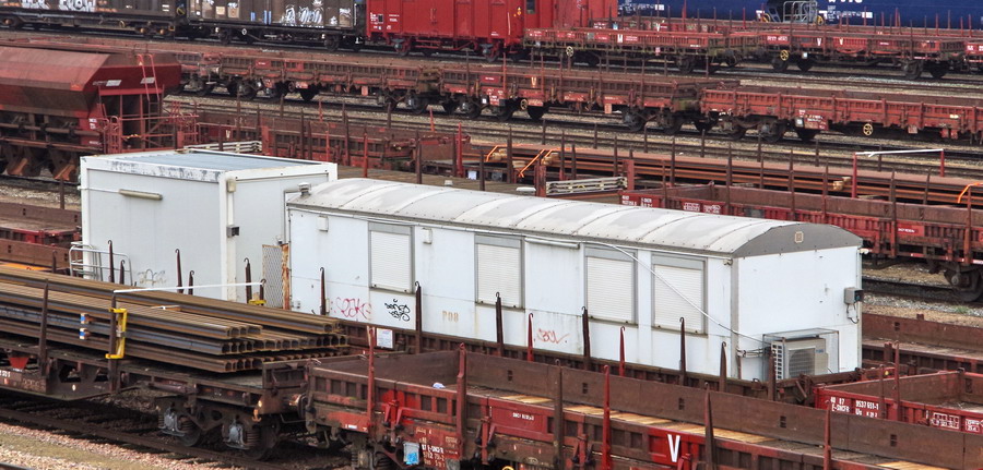 - 80 87 979 4 738-5 Uas R55 6 F SNCF-NT (wagon plat à bogies avec bungalow)