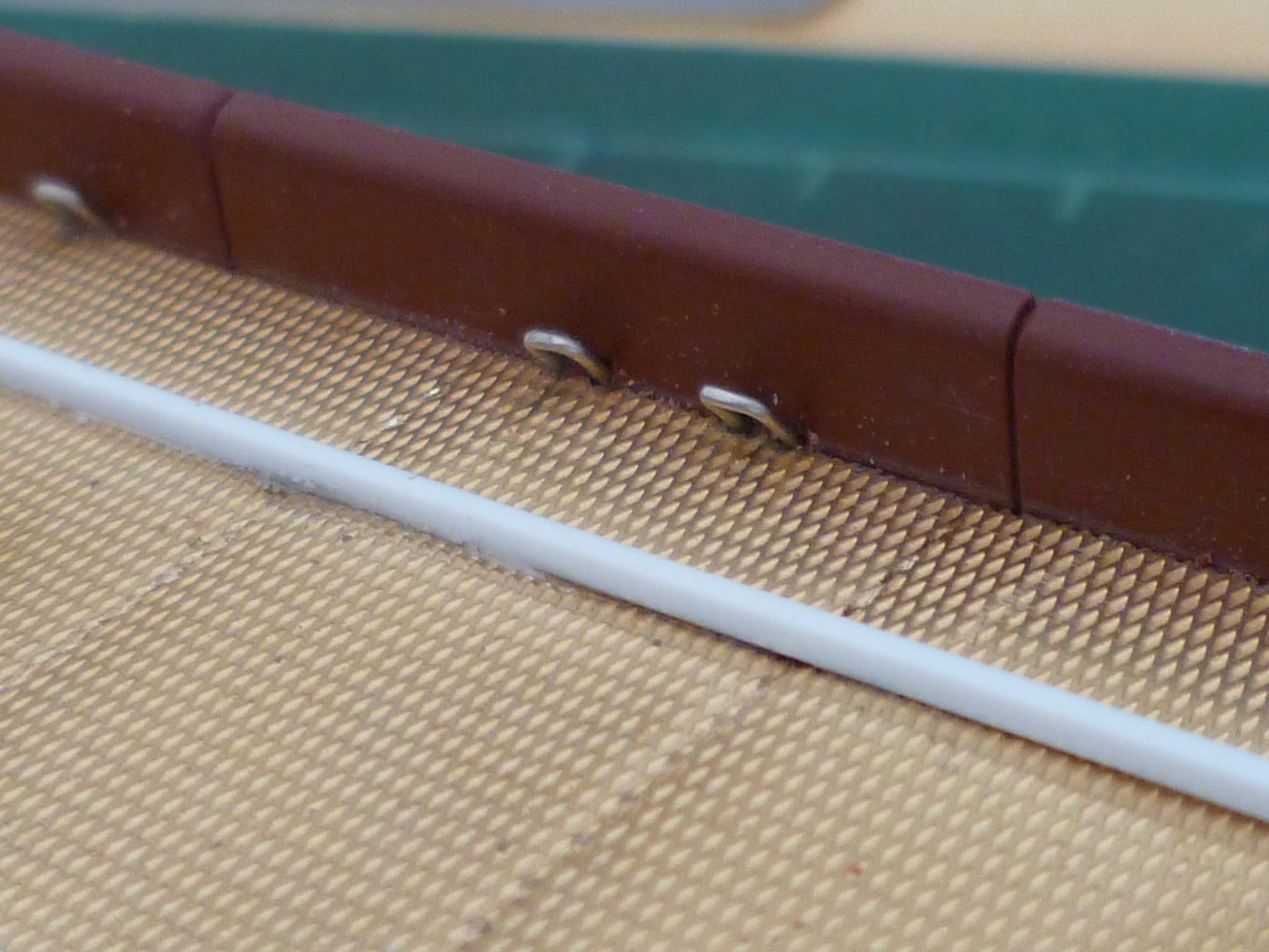 Crochets minuscules (au 1/87 !) destinés à l'arrimage du chargement. Il en faut 16 pour ce wagon ...