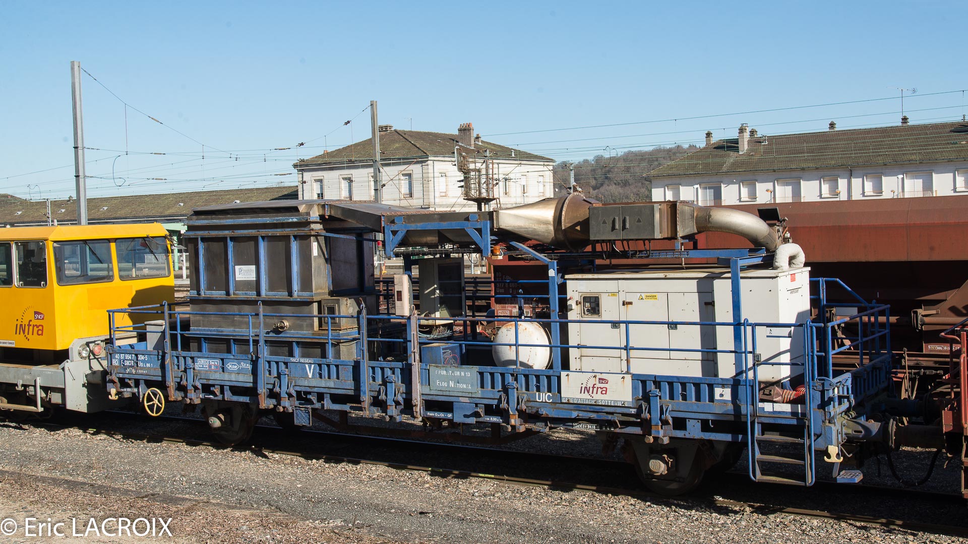 Wagon USL 86 1 épurateur n°13 Infra 40 87 954 7 304-5 SNCFR à Chalindrey en février 2019.