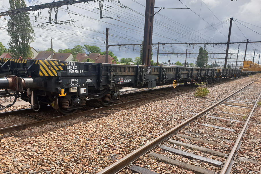 il se trouve sur la rame béton de TSO triage des Aubrais-Orléans pour Nangis (électrification de la ligne Paris Troyes) le 12 juin 2019