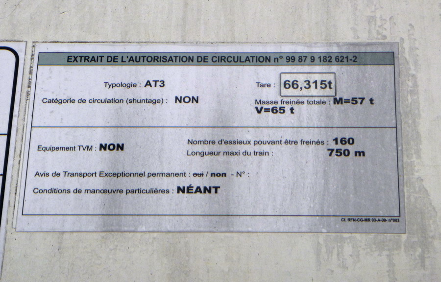 - 00/00/2007 Rebaptisé "99 87 9 182 621-2" après la réinstallation du contrôle individuel