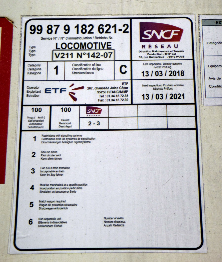 Il semblerait qu'il ait changé d'EVN mais que le panneau autocollant n'ait pas été changé. Il apparait sur la cabine et le 621-2 en gros caractères sur les flancs a été partiellement enlevé.
