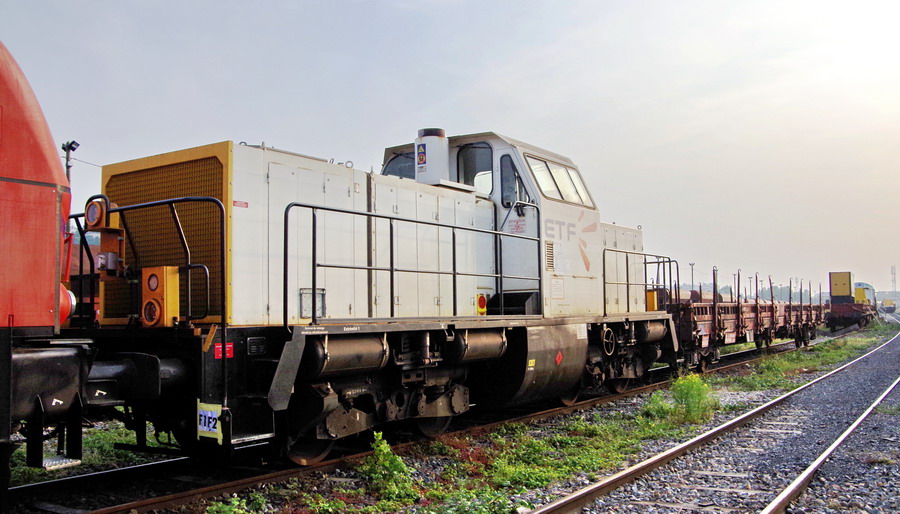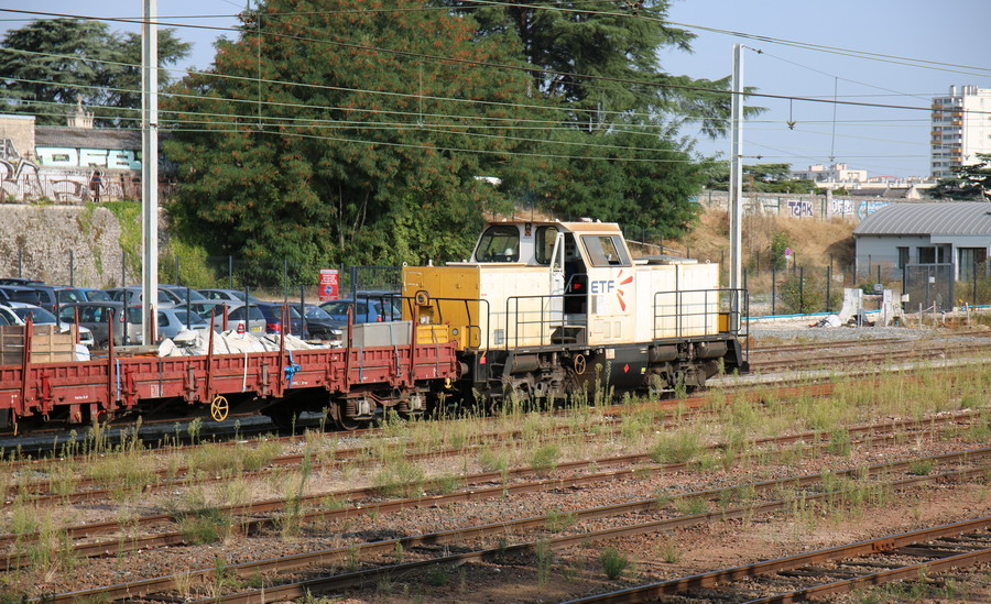 La voici sur le train n°F1F2 de la rame de finition et de ramassage de fin de chantier du RVB Blois - La Ville-aux-Dames avec en queue la G 1206 BB 1001377 - 92 87 0 061 013-4 de VFLI photos de François86 du Forum Wagons-Passion en gare de Blois le 28 août 2018