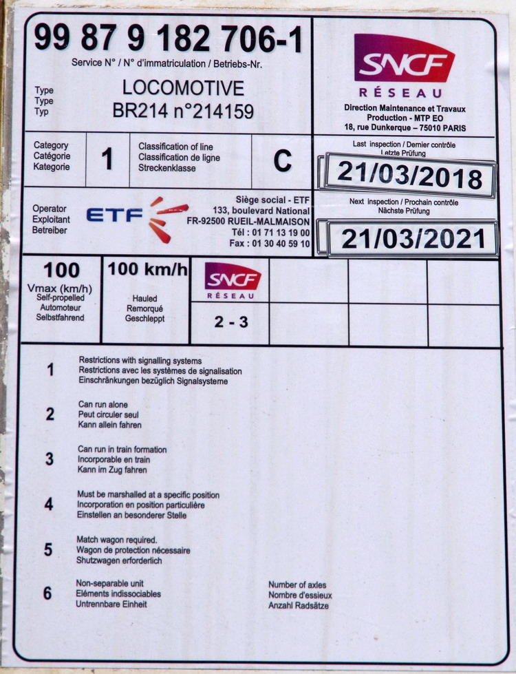 Pour compléter les infos sur la seule BR 214 pour l'instant pour ETF car il y a un projet en cour dans l'atelier de la Socofer/IMATEQ