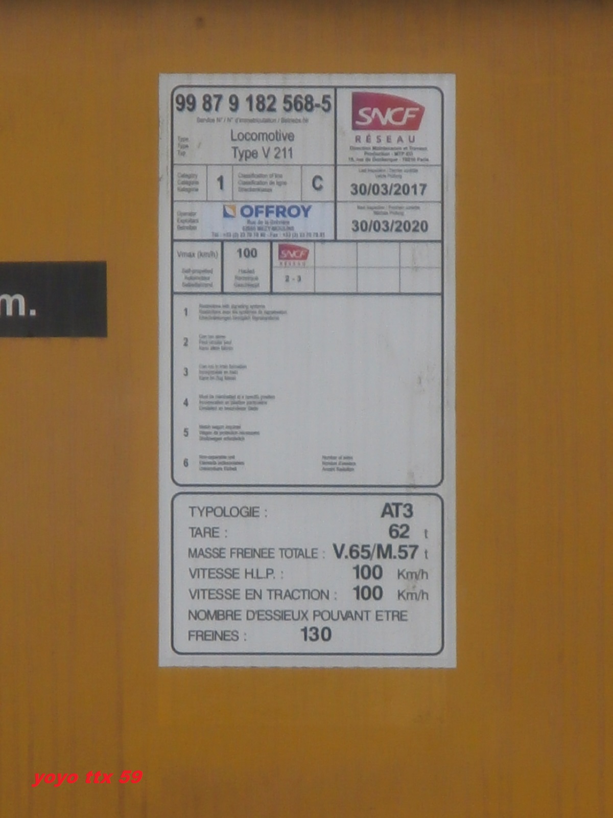 Je continue la galerie des engins moteurs, voici le 182 568 vu à Romilly sur Seine en Novembre 2009.