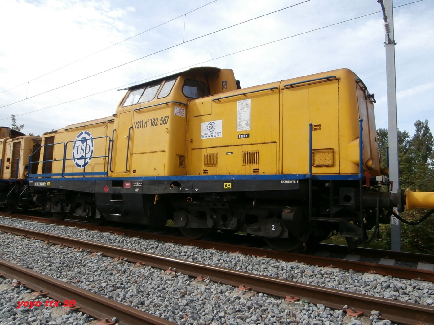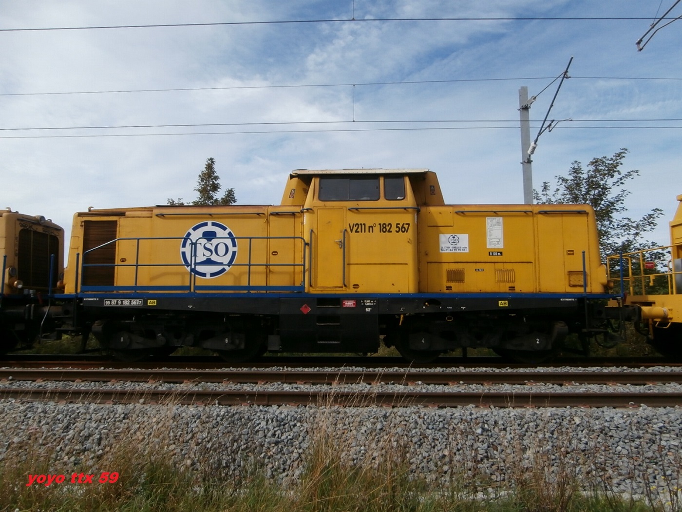 Ce V211 était a Gravelines le week end dernier sur le chantier de la ligne Dunkerque / Calais .Il était en compagnie du " V211 99 87 9 182 558-6 " .http://www.forum.sttx.fr/viewtopic.php?f=231&t=1727Voici quelques photos a Gravelines le 24/08/2014 :A suivre :
