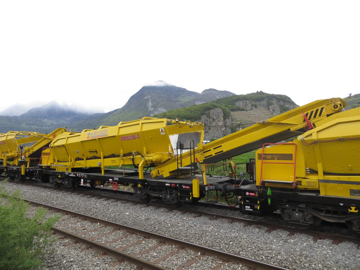 c'est un wagon utilisé jusqu'ici pour le transport des traverses du tunnel de base du Gothard que Scheuchzer à modifier pour le transport de portique.