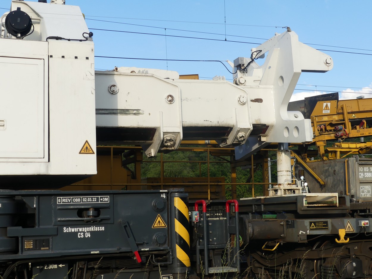 La grue Kirow KRC 1200-1 de Rhomberg Sersa Rail Group était à St.Triphon la semaine dernière. Photos le 26.05.2024.