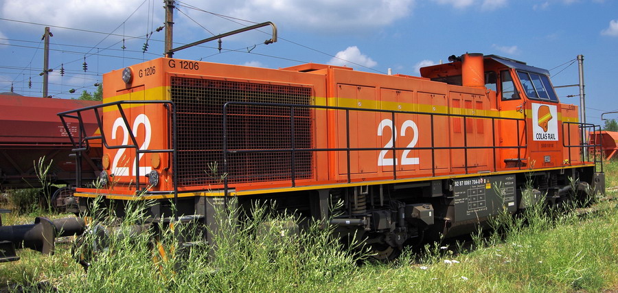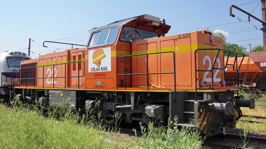 Voici la machine G 1206 BB 5001810 - 92 87 0061 704-8 F-COLRA de Colas Rail N°22 avec une rame de Faps