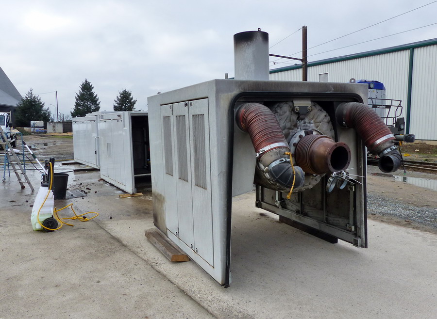 La voilà en révision avec nettoyage extérieur et intérieur des capots de protection et échappement moteur