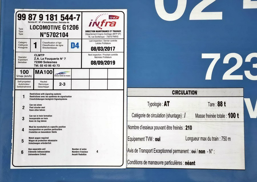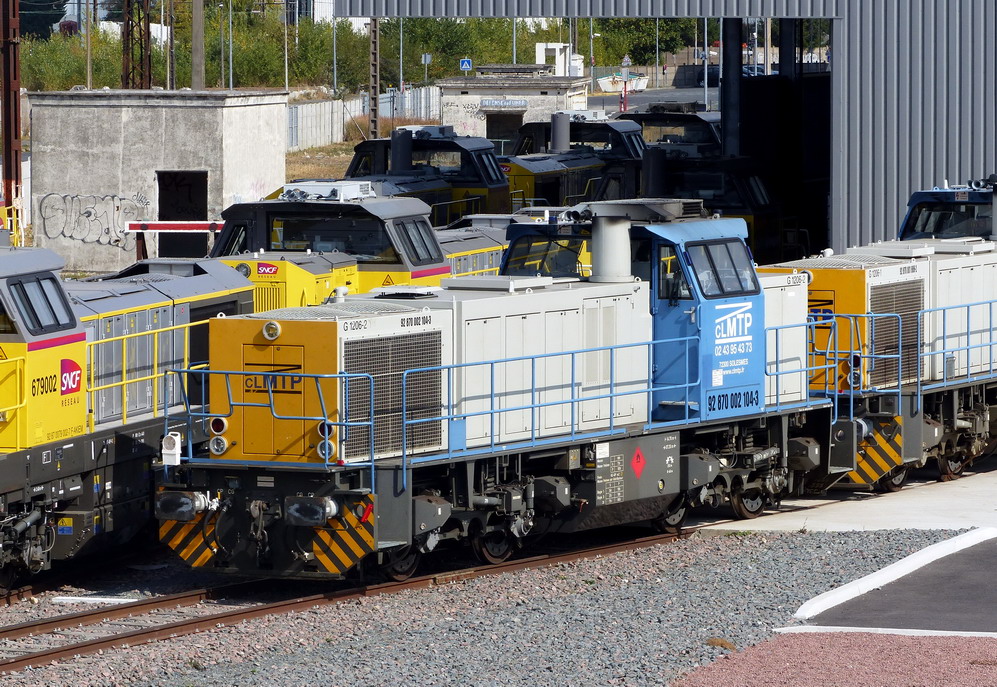 La voici sur le site de maintenance IMATEQ à Saint Pierre des Corps le 21 septembre 2019 avec son nouveau n° d'EVN 92 870 002 104-3 et en queue la G 1206 BB 5001888 - 92 870 001 888-2 ex 99 87 9 181 521-9