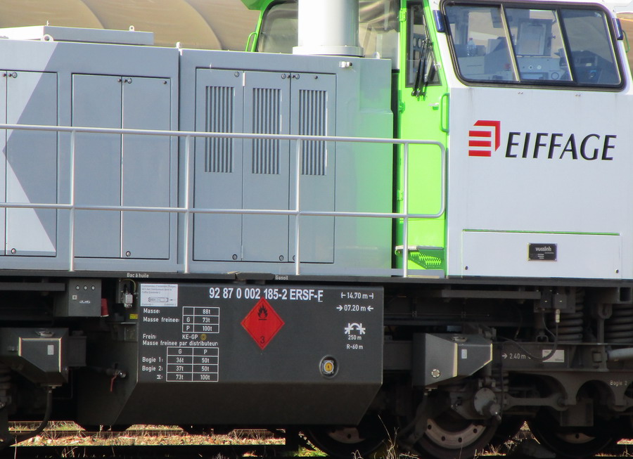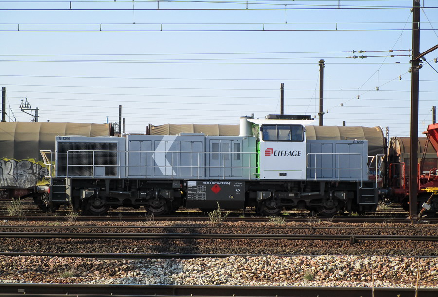 Voici la G 1206 BB 5702185 mise en service en 2016 - 92 87 0002 185-3 F-PIB - EIFFAGE (Vélizy-Villacoublay - 78) en livrée verte Vossloh