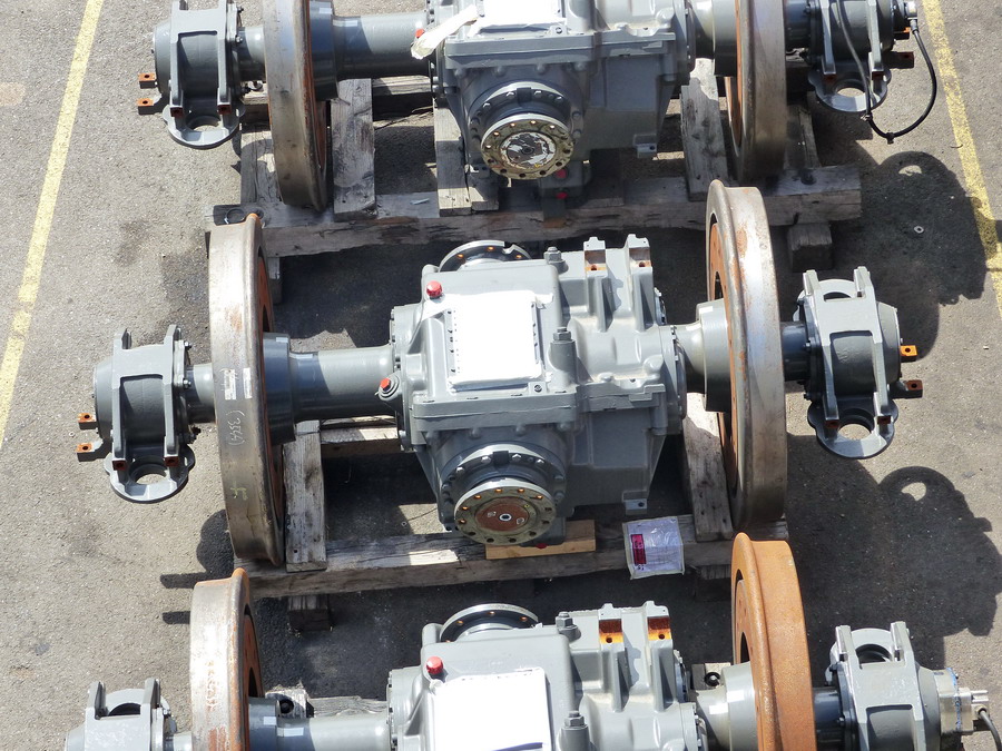 moteur et les essieux neuf pour changement sur les bogies par la suite à l'extérieur de l'atelie
