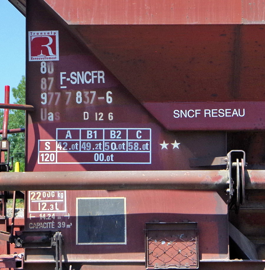Wagon Trémie 80 87 977 7 837-6 Uas D12 6 F-SNCFR - SNCF RESEAU (utilisation par Transalp Renouvellement avec leur logo)