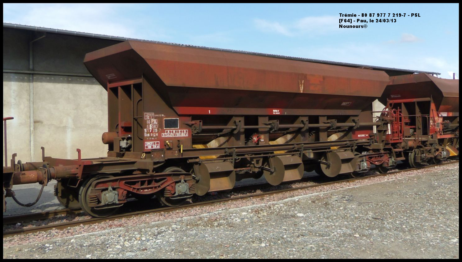 Voici le wagon trémies à boggies 80 87 977 7 219-7 Uas D12 6 - F SNCF-PSL à Saint Pierre des Corps le mercredi 19 mars 2014