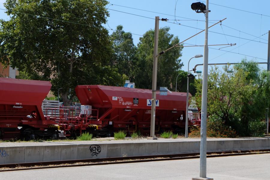 Wagon trémie présent en gare de Hyères le 9 septembre 2014 dans une rame de 10 wagons.
