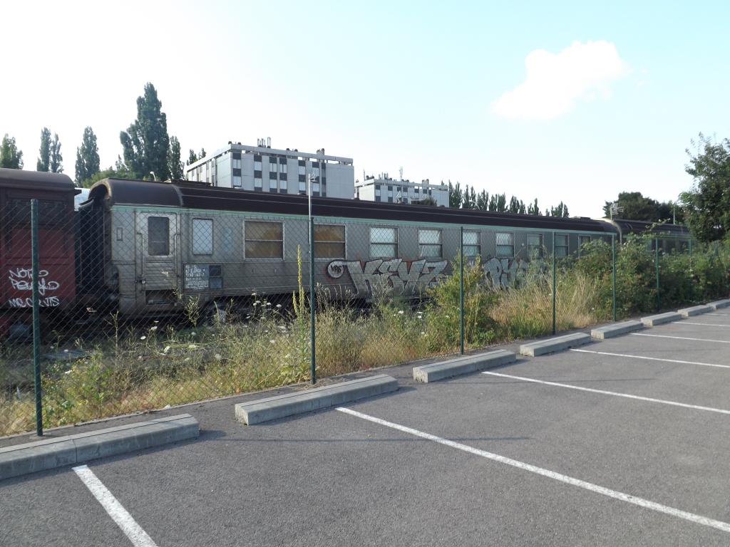 Voici la voiture 80 87 979 0 560-7 Uas H55 0 5 SNCF-PSL gare d'attache Gevrey Chambertin - Equipe Gop VTX sur un train Infra avec les