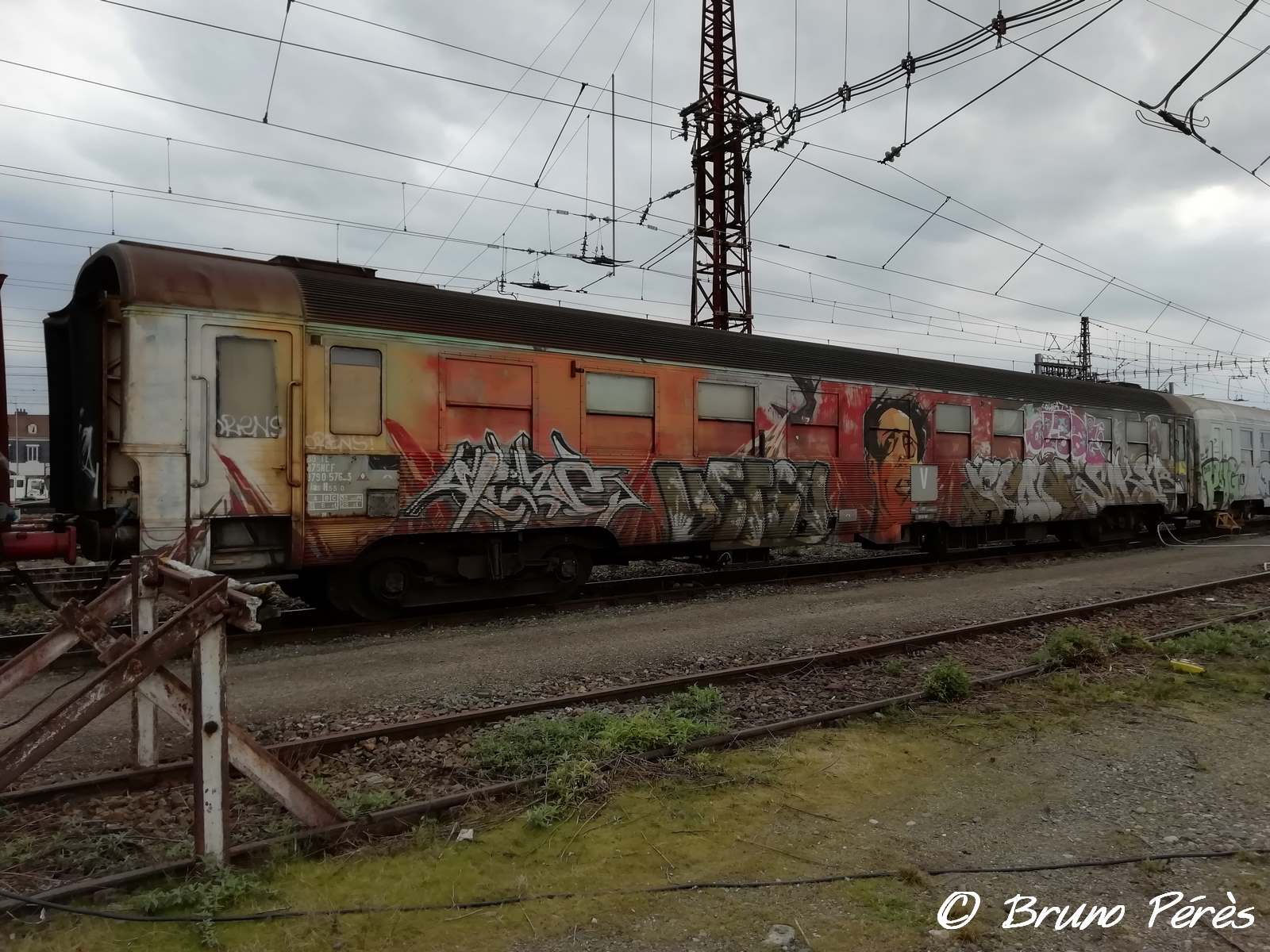 Photomontage des deux faces en juxtaposant plusieurs photos. Cette voiture est régulièrement engagée avec le train désherbeur de Toulouse.
