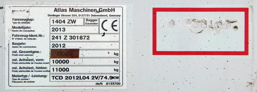 ATLAS 1404 ZW n°241Z301872 - 2012 - ETF 300 3985 à Compiègne le 15-09-2019