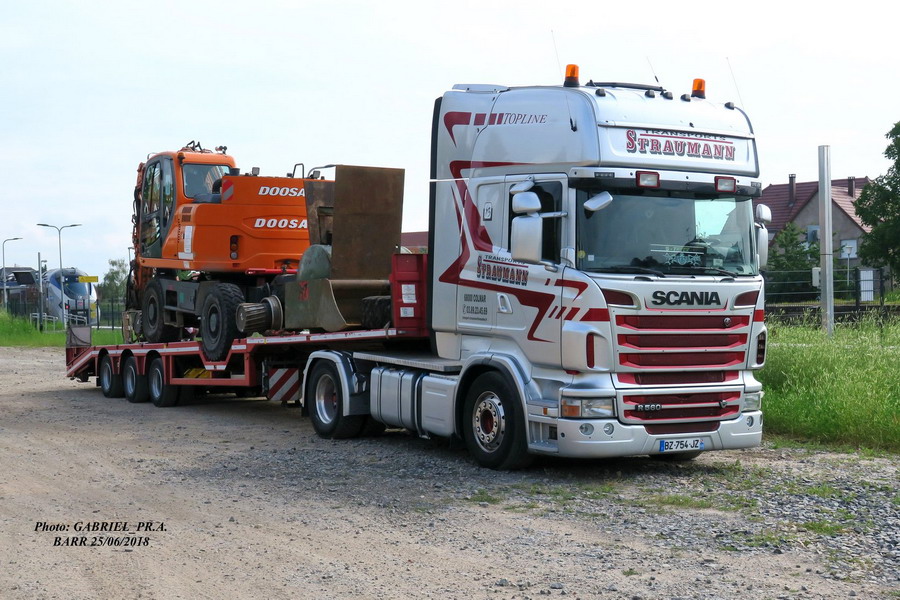 entre Barr et Sélestat sur le camion SCANNIA R560 de la société Transport STRAUMANN de Colmar