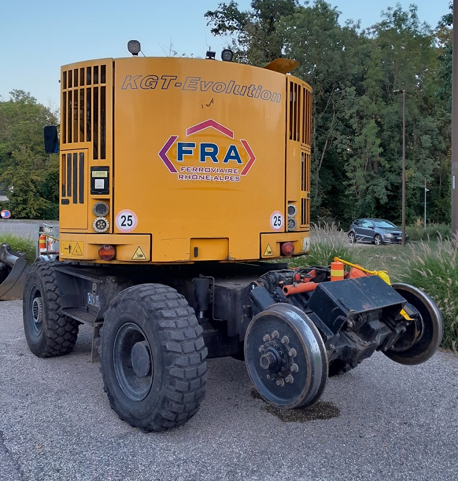 Revoici cette pelle quelques mois plus tard, à Charbonnières les Bains dans le cadre des travaux sur la ligne 782 000 des tram-train de l'Ouest lyonnais :