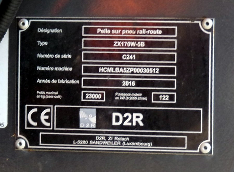 Pelle Rail route D2R de type ZX170W-5B n°HCMLBA5ZP00030512 série C241 de 2016 pour CLMTP