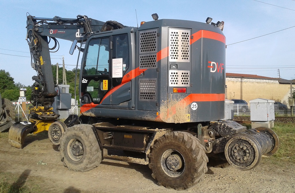 Revoici cette Pelle RR près de Chasselay dans le cadre des travaux de voies sur la ligne 783000 en Juin 2022 :
