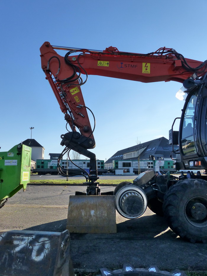 photos prises avec un grillage à 1,50 m de la Pelle et un magnifique contre jour dans le dépôt de Saint Pierre des Corps le 25 décembre 2018