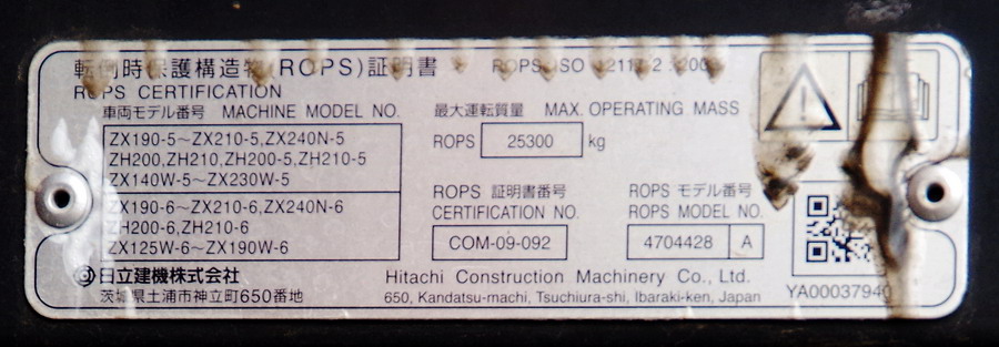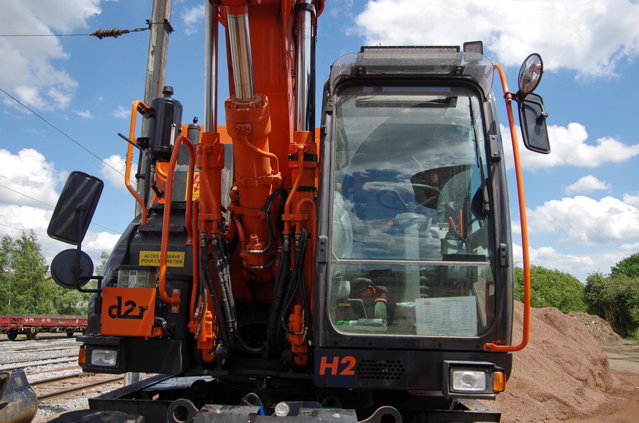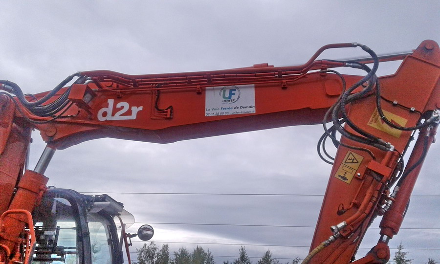 Une Pelle Rail route D2R de type ZX170-6 n°HCMLBE5ZC00040386 série C264 de 2018 pour UNIFER parc n°H2