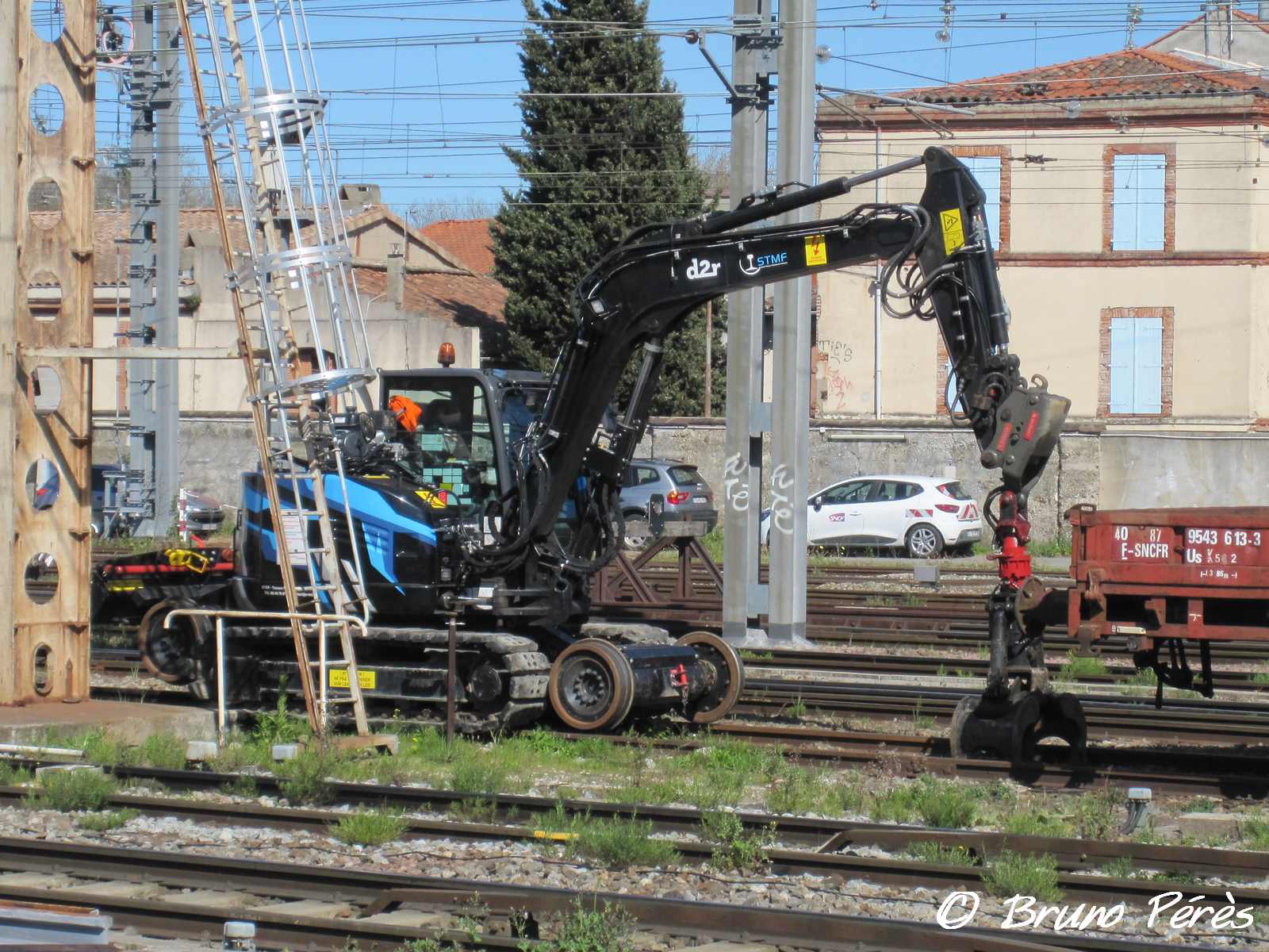 Vue ce jour à Toulouse Matabiau. J'ignore tout de cette pelle, sauf qu'elle a été transformée en RR par D2R, et qu'elle appartient à STMF. Qui peut en dire plus ?
