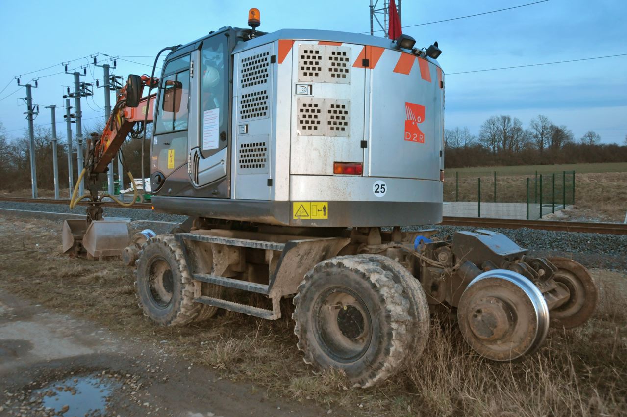 Voici une pelleteuse Hitachi ZX 150 / 170 - D2R - TPe - Taponnot au bord de la bretelle LGV-Est <=> Reding