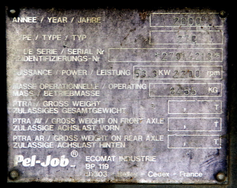 Voici la Pel Job EB 706 n°27014213 de 2000 de l'Infralog NPDC (Hors-service)