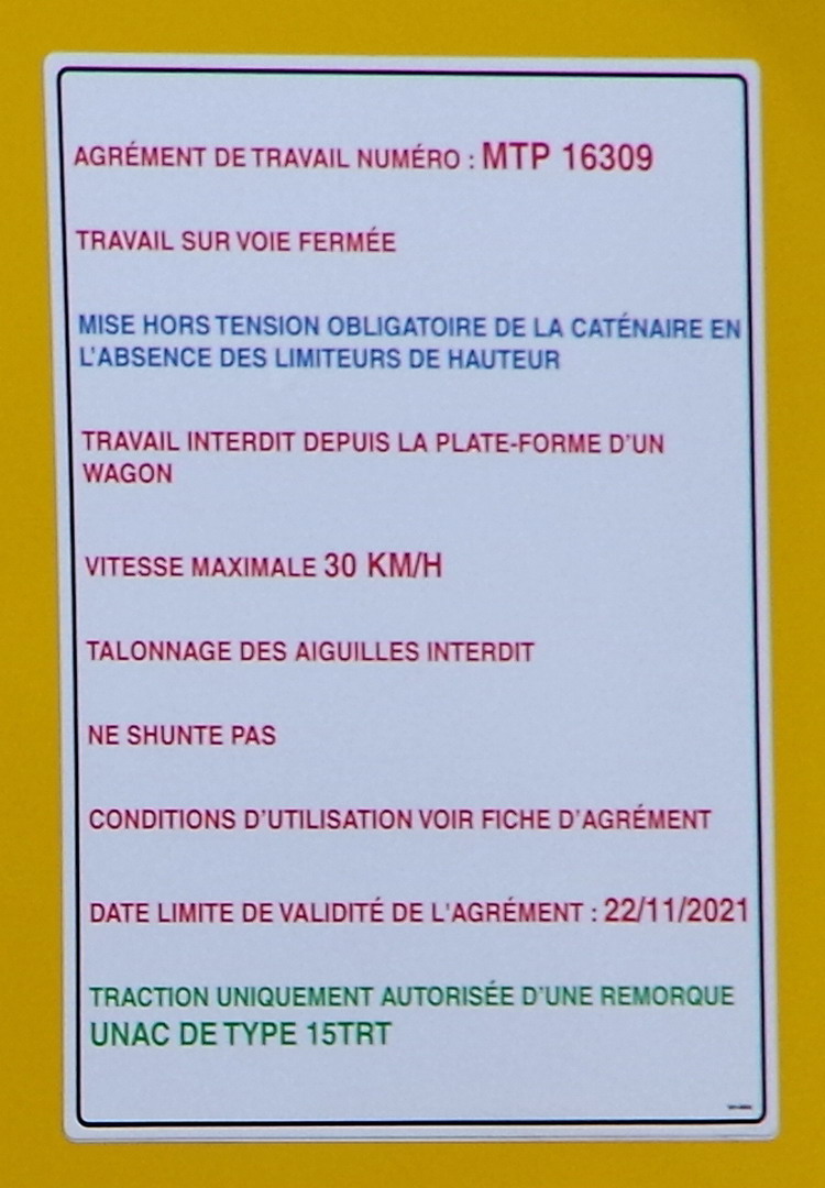 Prototype 1 n° UC0022FACP500101U Agrément de travail MTP 16 309