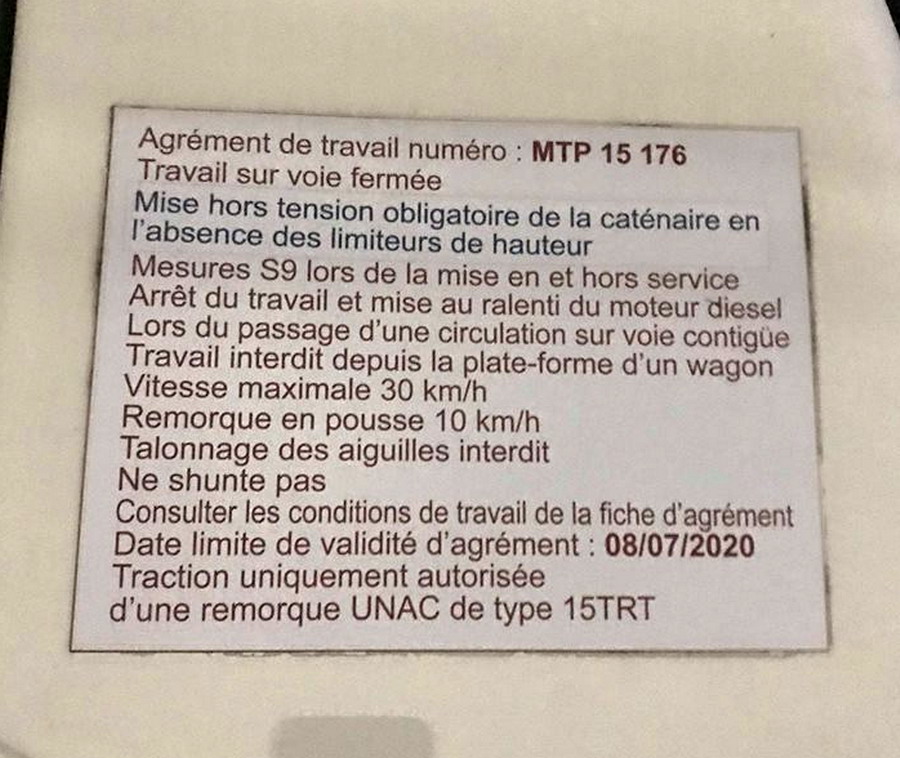 Agrément de travail MTP 15 176 - 08-07-2020 - n° de parc ETF 3004302