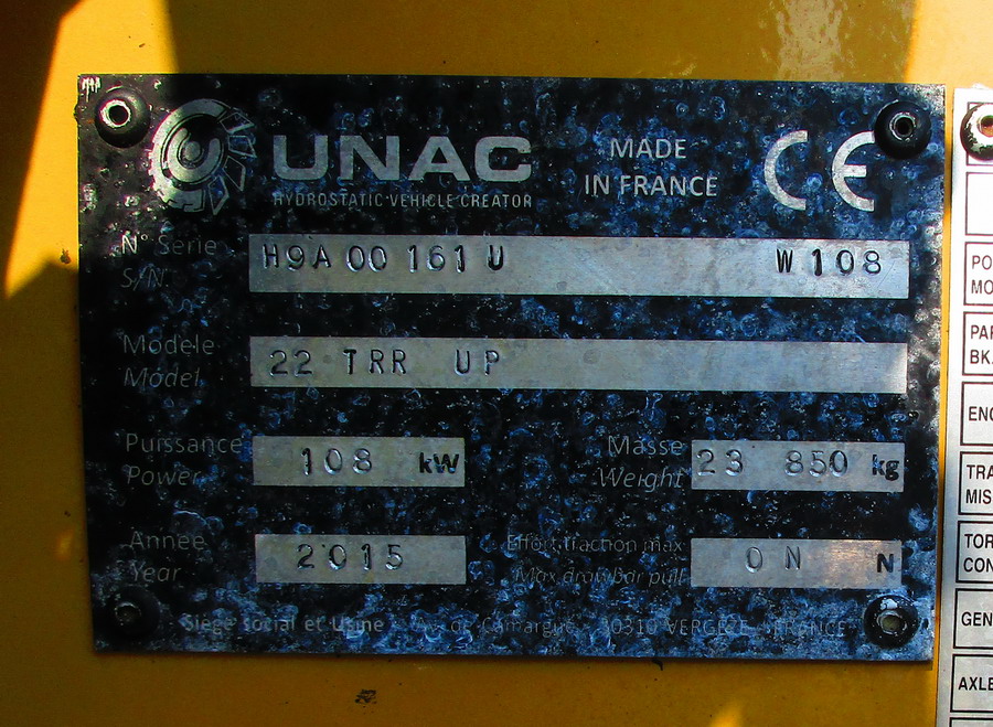 Pelle Rail route UNAC 22 TRR n°H9A 00161 U série W108 - 2015 de l'Infralog de Limoges Lorry n°3