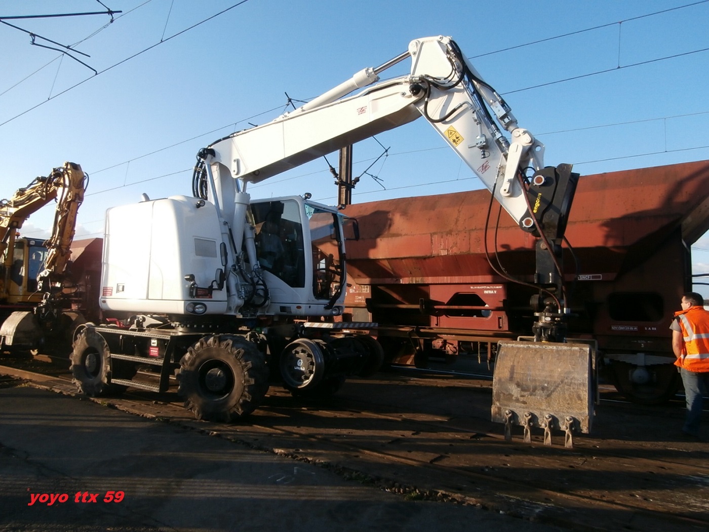 La pelle doit traversée le PN , mais elle est bloquée par le train de ballastage :roll: .