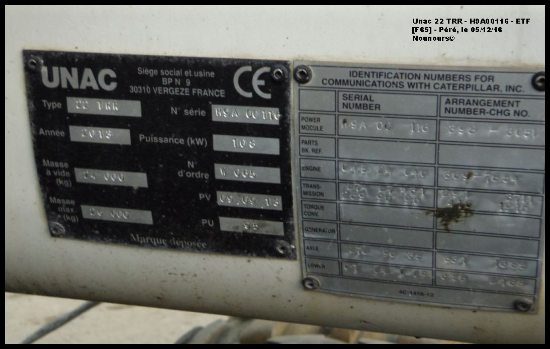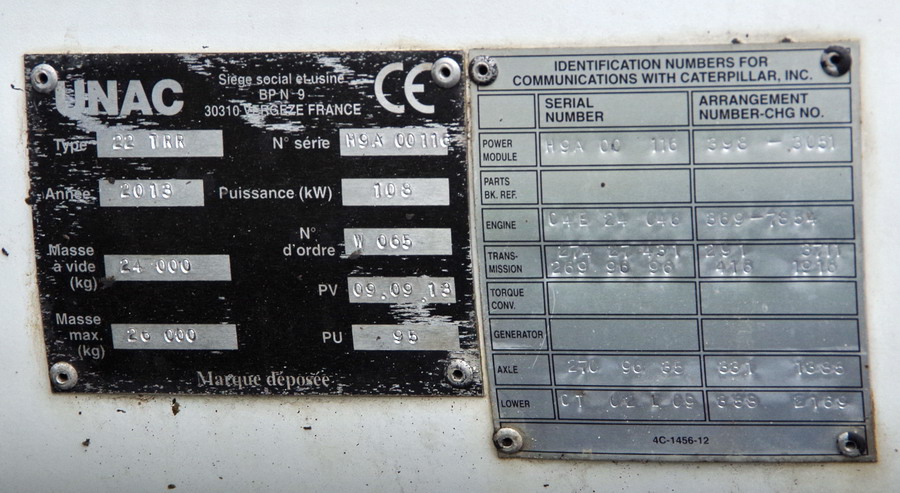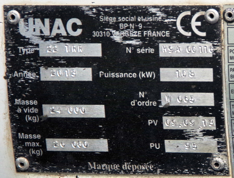 UNAC 22 TRR n°H9A00116 série W065 de 2013 - Agrément de travail : DPI 13 165 - 03-09-2018