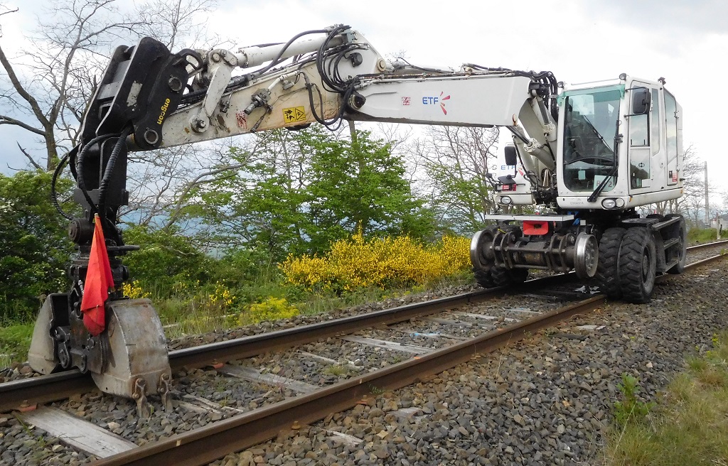 Après plusieurs années de service, on la retrouve sur un chantier de remplacement de traverses dans le cadre du CPER Saint-Georges-d'Aurac - Le Puy-en-Velay :