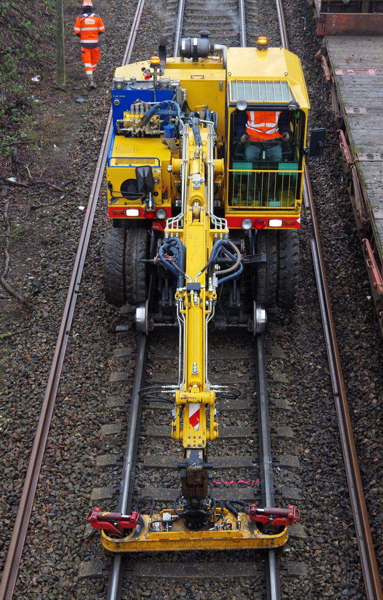 La voici avec la VaiaCar V704FR+ n°3713V7033 Meccoli 5 en plein travail de coupe d'un tronçon de rail au PN 37 à Eppeville (80)