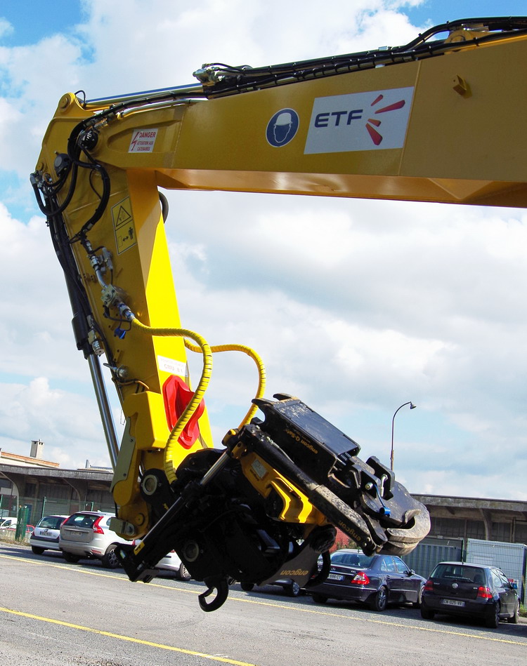- C18VE Railway Set disponible pour pelles de 13 à 18t de PTR en ensemble complet: corps hydraulique, benne avec dents vissées, griffes à traverses & rails, rotator, protège flexibles, 2 anneaux de levage soudé et clapet anti-retour piloté simple.