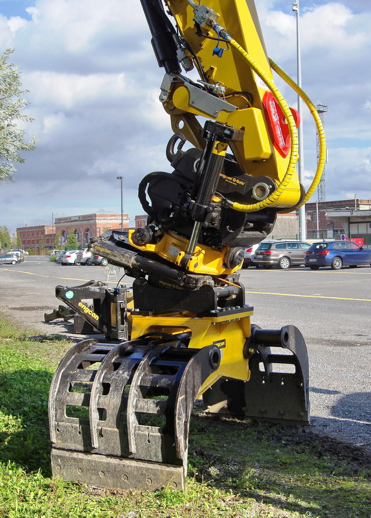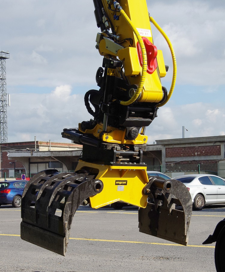 Une autre option est la C18VE/RIG, une benne preneuse avec deux vérins verticaux sans rotator pour montage rigide avec système de changement rapide de coquilles. Au-dessus, une platine pour attached rapide peut être montée directement: idéale, si utilisée en combinaison avec un tiltrotator. Cette variante dispose d'une pièce centrale spécialement renforcée. Avec le système optionnel de cardan spécial, la benne preneuse peut aussi être montée en suspension libre sous le tiltrotator.