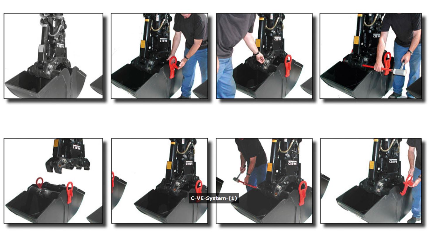 Tous les versions spéciales de la benne preneuse C18VE se caractérisent par le système des coquilles interchangeables: changement rapide en 4 minutes en chassant uniquement 2 axes.