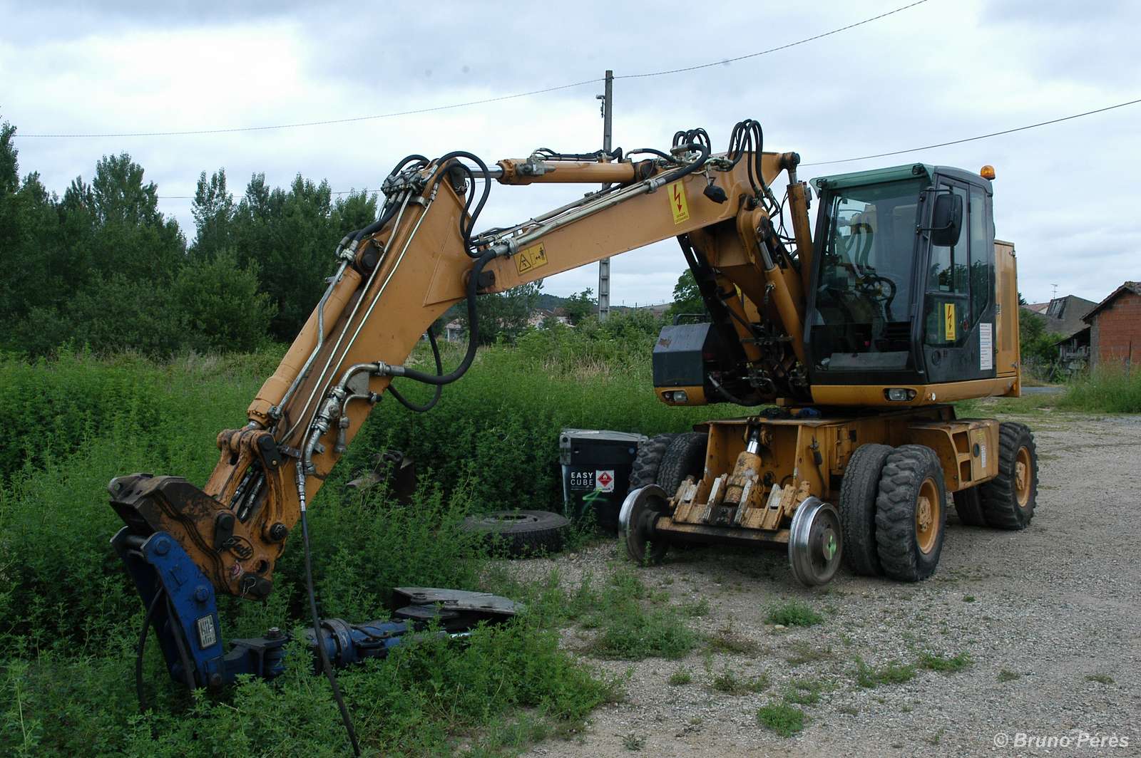 Machine vu à Laluque (40) pour le chantier de construction de la base travaux (environ 15 hectares) de la ligne Bordeaux - Irun, j'ai également aperçu du matériel Avenel, GVF et SNCF.