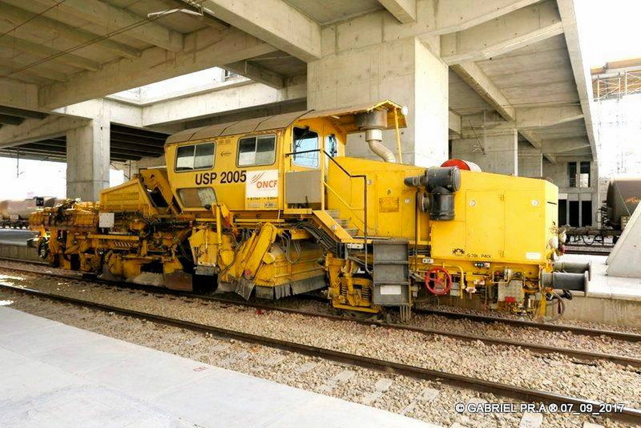 Voici une Bourreuse de type 08-32C non identifiée vue par Gabriel Schweitzer de retour de Rabat en gare d'Aïn Sebaâ qui est une gare