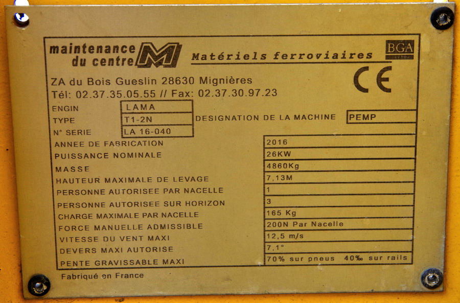 LAMA T1-2N n°LA 16-040 de 2016 (Maintenance du Centre) pour HP Elec parc n°4